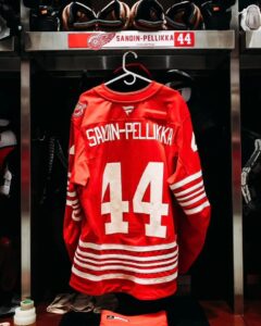 Axel Sandin-Pellikka from Sweden. Defenseman on the roster. Drafted by this organization in the 2023 NHL Draft. Help out Moritz Seider at the Defenseman position in the upcoming years ahead. 20 years old. Need more Defenseman besides Moritz Seider & Axel Sandin-Pellikka on the roster. They are lacking of depth at the Defenseman position still. 2 nice ones on the roster now. Need more than 2 Defenseman on the roster.