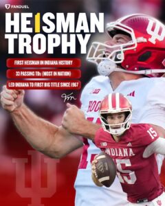 Fernando Mendoza is the 1st ever Indiana Hoosiers π player to win the 2025 Heisman π ever in School History. Well deserved honor. Head Coach Curt Cignetti & OC Mike Shanahan gets a lot of credit on a job well done in the last 2 years in Bloomington. Leave New York City on Saturday Night with a Heisman π in his hands. Job isn’t done yet. Unfinished business to handle yet still to come. Prepare for Oklahoma or Alabama in practice next week.