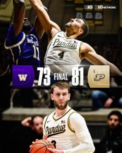Braden Smith broke Cassius Winston record for most assist in B1G Conference 🏀 History on Saturday. Got a 81-73 win over the Washington Huskies on Wednesday Night at Mackey Arena in West Lafayette, IN. Got over 900 career assist & counting. Good 4 years for the Purdue Boilermakers 🏀 Team. Building a good “Legacy” already now in progress. Good Backcourt duo in the B1G Conference 🏀 right now with Fletcher Loyer at the helm. Won 101 games & counting for Head Coach Matt Painter. In the Class of 2022. Went to the 2024 Final Four appearance. They were National Runner-Up Finishers in 2024. While he was a Sophomore. Job isn’t done yet. Work to do out there anyways. Unfinished business to handle yet still to come. Matt Painter is blessed to have Braden Smith as his PG. Got a “Legacy” in play already. Congratulations on being the all-time assist leader in B1G Conference 🏀 History on Saturday.