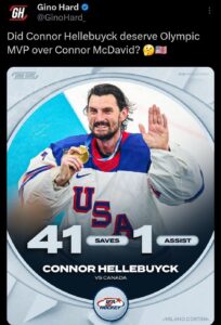 GO 2026 USA 🏒 TEAM GOALIE CONNOR HELLEBUYCK…..